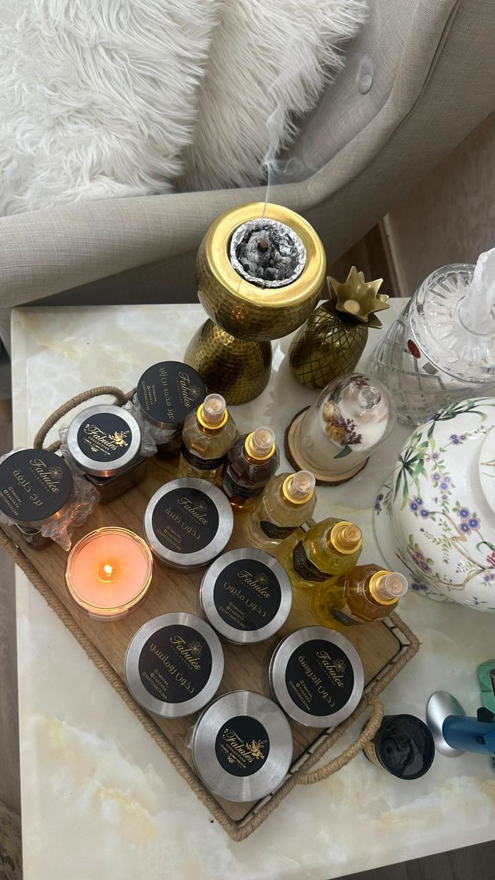 We proudly offer a refined collection of premium Dakhoon, carefully crafted using the finest ingredients and traditional methods. Our Dakhoon blends rich oud notes with luxurious oriental fragrances to create a deep, elegant aroma that fills the space with warmth and sophistication.